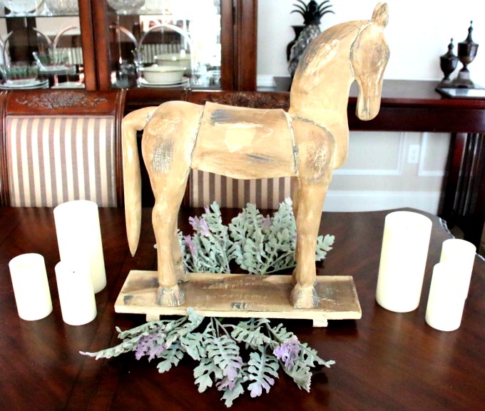 I love this horse from Painted Fox. At the time I purchased it, it was 40% off. I don’t know if it is still on sale, but I love it and it is the perfect size for my table. Even if it’s not on sale, it is a great piece to have and it is so darling as a winter decoration.