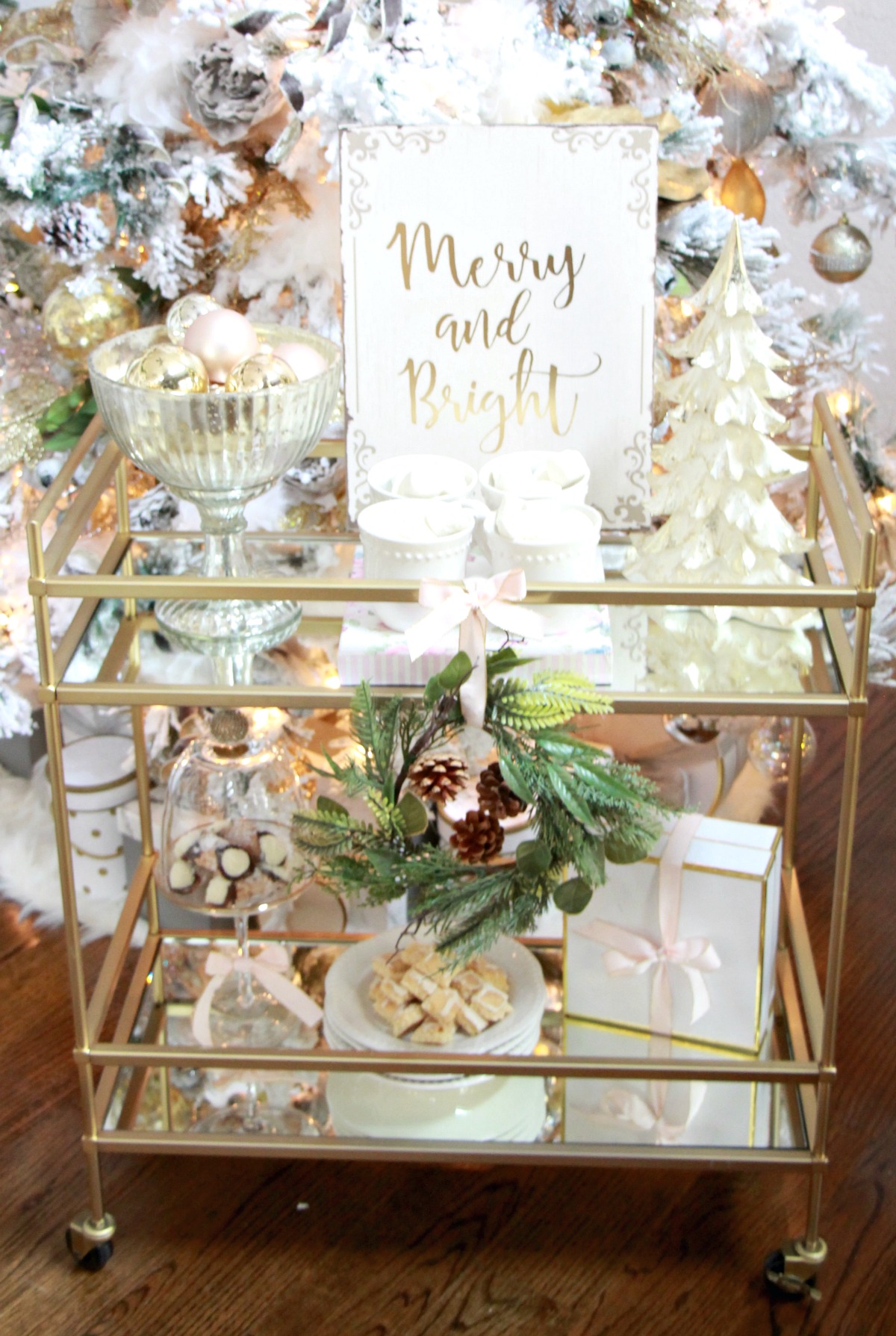 The bar cart in front of my 9′ flocked tree is one of the best shots of the year. Â Not only was it in the final Winter Wonderland Christmas Home Tour it was also one of the better performing pictures on Instagram. However, this shot took about 2 hours to get. Â Here are a couple pictures showing how I got this final look.