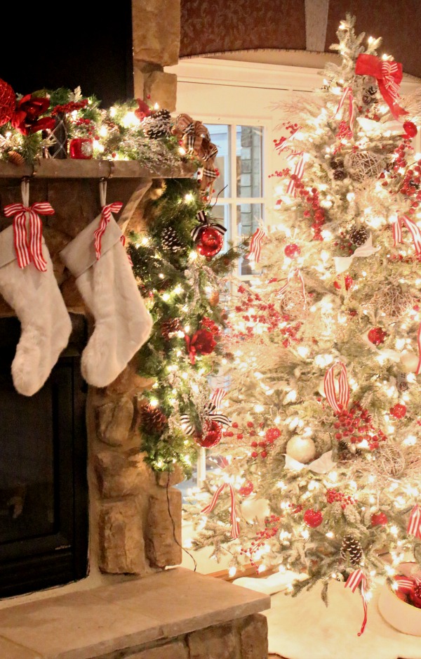 I love how the red and white looks on the white tree. If you don’t have a flocked tree you can make it look flocked by adding snowy picks all over the tree. This really changes the look of your tree drastically. I will be doing a detailed post on how I did that on my Burberry Plaid tree next week.