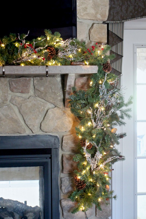 While the Christmas tree is usually the show stopper and takes center stage for the holidays, a fireplace or mantel can be a close second. Â It is definitely a focal point in your family room and needs to be decorated just as nicely. I like to use the same color scheme as I do in my tree to give my home a cohesive look.