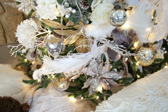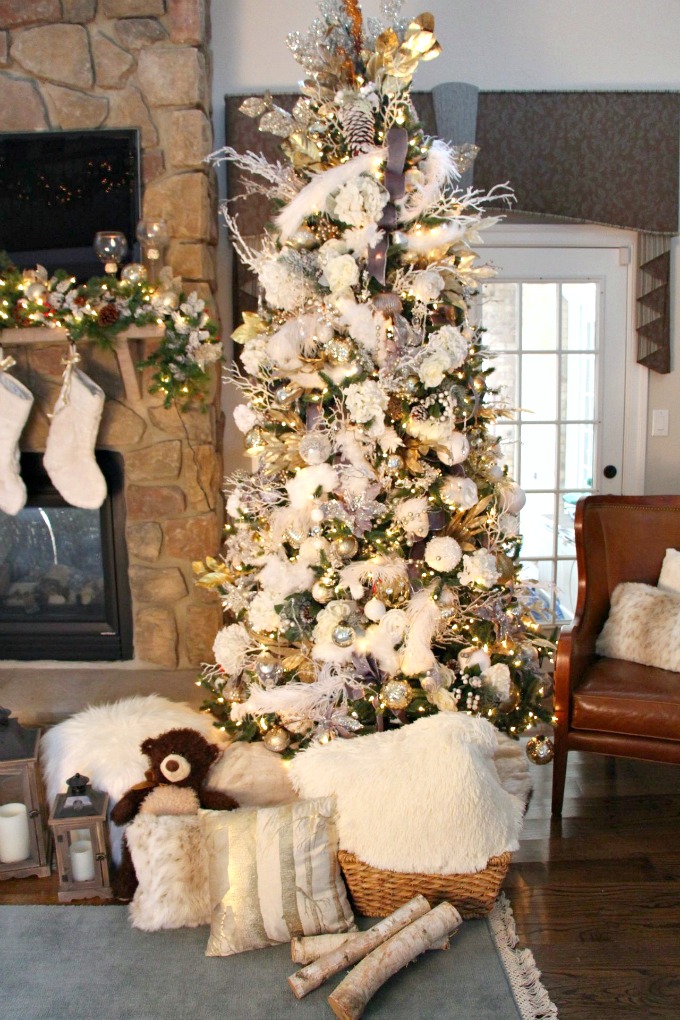 This white, gold, and silver tree is elegant yet has that cozy vibe. You just want to pick a spot in front of the fire and relax with a cup of coffee and a good book.